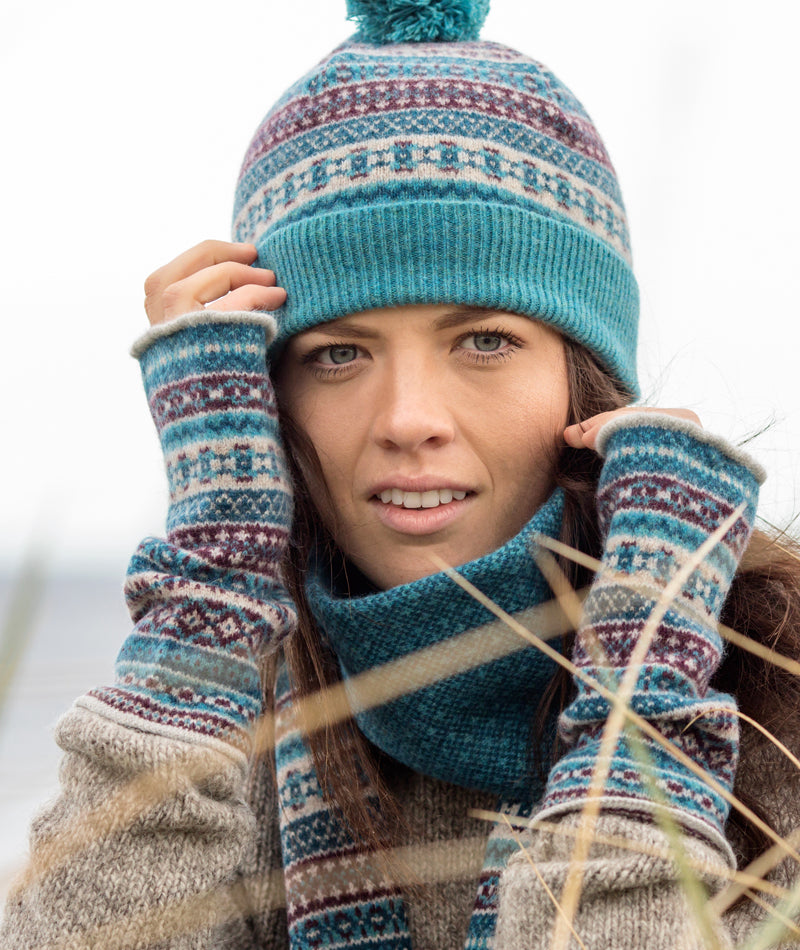 Matching ski hat, beanie hat and scarf in our "Tweed" fair isle pattern available. Also co-ordinates with our lambswool beanie hats and lambswool classic gloves (can be worn underneath) in Black, Mid Grey and Charcoal.