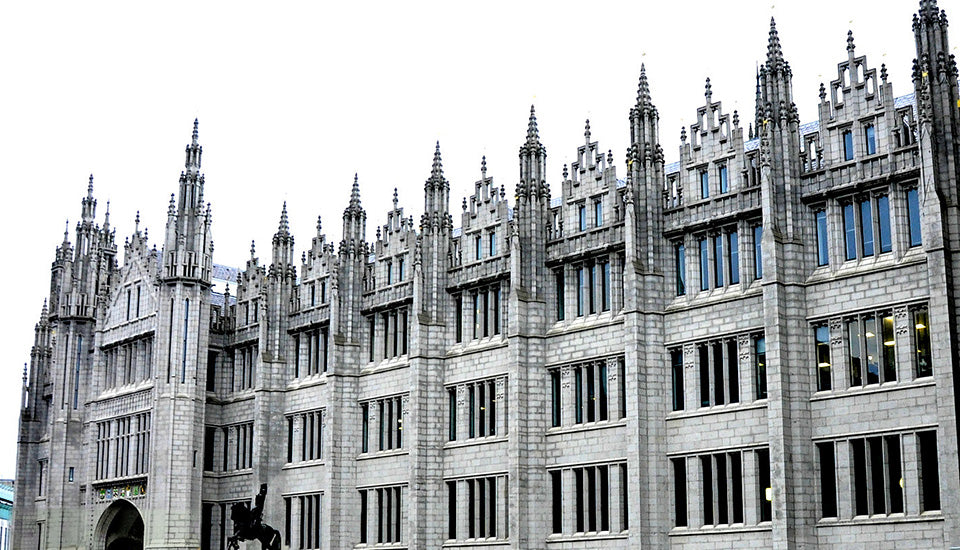 Having grown up in Aberdeen, I'm used to the wonderful building which is Marischal College, dominating the city skyline. Made from the local silver granite for which Aberdeen gets it's nickname "The Granite" or "Silver City", it is the second largest granite building in the world. The granite quarried here was used all over the world, but particularly in London in notable buildings and as cobbles to produce hard wearing roads in the capital.