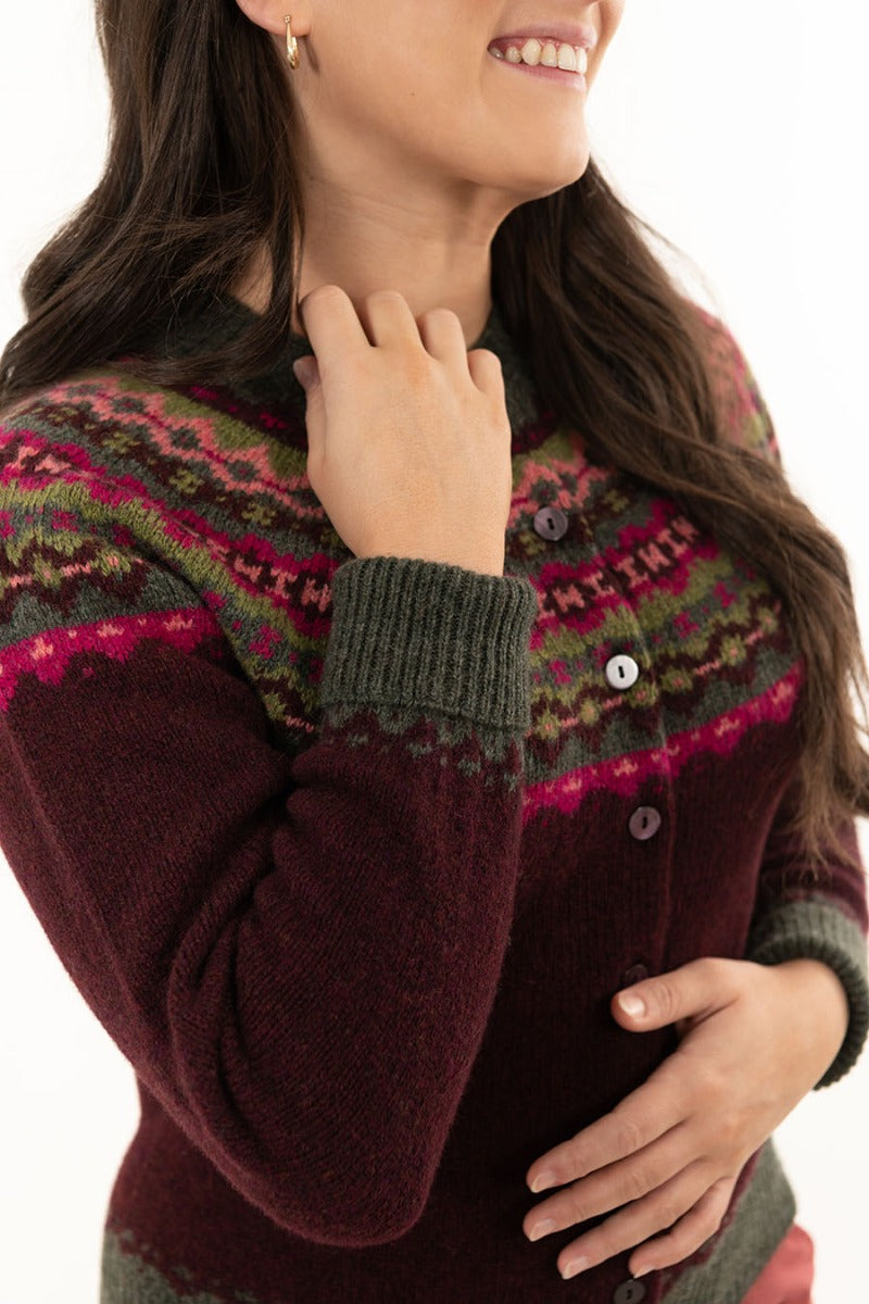 Womens Crathie Fair isle Cardigan - Burgundy